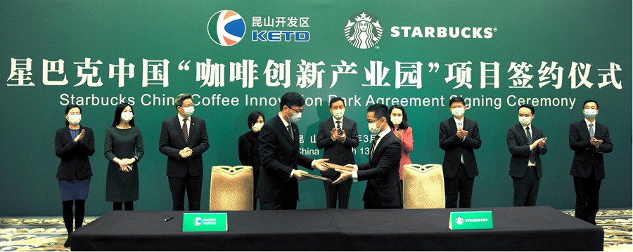 國際知名咨詢公司世邦魏理仕,多次向美國星巴克集團大力推薦昆山并陪同考察決策建議,成為投資方選址的決定性因素。2020年3月,星巴克咖啡創新產業園項目正式簽約落戶,該項目投資額10.9億元,是美國500強企業去年在中國投資的首個產業項目,投產后年產值將達到11億元。