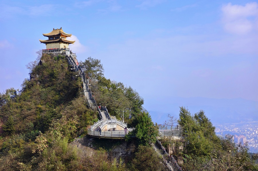 10月29日,靖州飛山景區迎來秋游熱潮,眾多游客登臨金頂觀景攬勝。劉杰華 攝