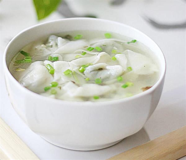 皺紗餛飩出自南門口的"雙燕"餛飩店。它采用富強粉為原料,精工搟成的皮,薄如紙,軟如緞,吃有韌勁。餡心選用新鮮豬腿瘦肉,配以適量肥肉,絞成肉泥,再加一定比例的清水、食鹽、味精等,使勁攪拌肉至泥,吃透水份。這樣制作的餡心酥而不爛,嫩而泡松。包好的餛飩,一經煮熟,外皮起皺,緊裹餡心。因皮薄似輕紗,故有皺紗餛飩之稱。其湯選用高湯,配以排冬菜,昧道鮮美。