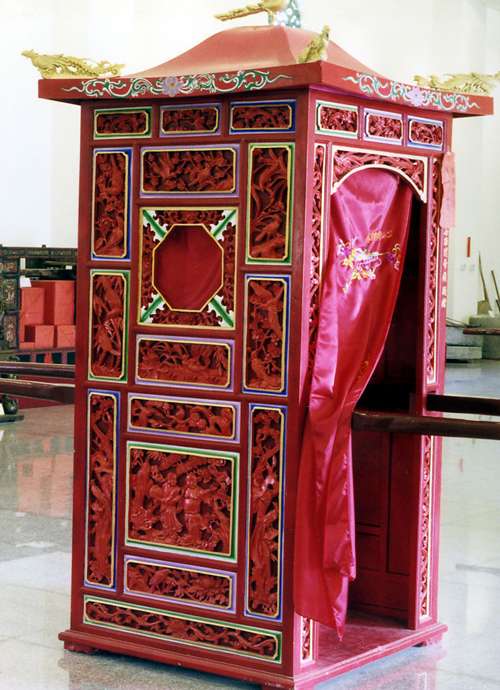 轎子是昔日主要代步工具,除富者及老弱病殘外,每個(gè)女人一生至少要坐一回。官吏坐的轎,等級(jí)森嚴(yán),有4人拾8人抬的,還有16人抬的,人們分別稱之為“四抬”“八抬”官人。民間有轎行,俗稱轎碼頭,辦理出租業(yè)務(wù)。長沙的轎有馬轎、蓬轎、鏡轎、涼轎之分。馬轎、篷轎多用竹制,較輕便,宜遠(yuǎn)行。馬轎最簡(jiǎn)易,在兩杠之間綁一坐板、踏腳板或竹椅之類即成。篷轎比馬轎稍復(fù)雜,有藍(lán)布篷蓋。鏡轎是木制的,裝有玻璃,遮有布簾,宜婦人乘坐。涼轎多為私人所有,一般為藤制,有帆布或皮質(zhì)篷蓋,屬軍官、士紳專用。故1926年興農(nóng)會(huì)時(shí),打轎子成一時(shí)風(fēng)氣。但直到1949年,鄉(xiāng)下仍時(shí)見坐轎的。在市井,由于人力車等交通工具的發(fā)展,到抗戰(zhàn)時(shí)期,轎子就已極少見了。