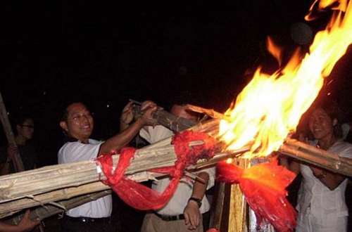 船民四季出沒風(fēng)波里,被稱為“船拐子”,生活艱險(xiǎn),禁忌很多。平時(shí)脫口而出的話,他們當(dāng)作是未來兇吉的兆頭,叫“口風(fēng)”。他們說話特別忌諱龍、虎、鬼、夢(mèng)、翻、滾、倒、沉等字眼,而將龍說成“溜子”,姓龍說姓“溜”;虎叫“貓”,腐乳叫貓乳;斧頭叫開山子;鬼叫浸老倌、矮老子;夢(mèng)叫黃梁子;帆叫風(fēng)篷;睡覺翻邊叫斜邊;滾水叫開水;姓陳說姓“袍”開排啟航,不但要擇吉日,而且要遇好兆頭才能成行。