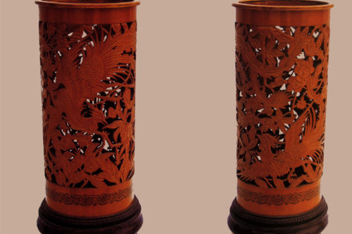 寶慶竹刻制品集觀賞與實用于一體,主要有:筆筒、官帽筒、貼簧箱、籠、篋、盒、文房擺件、掛屏、屏風、純藝術制品等。