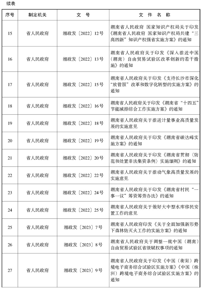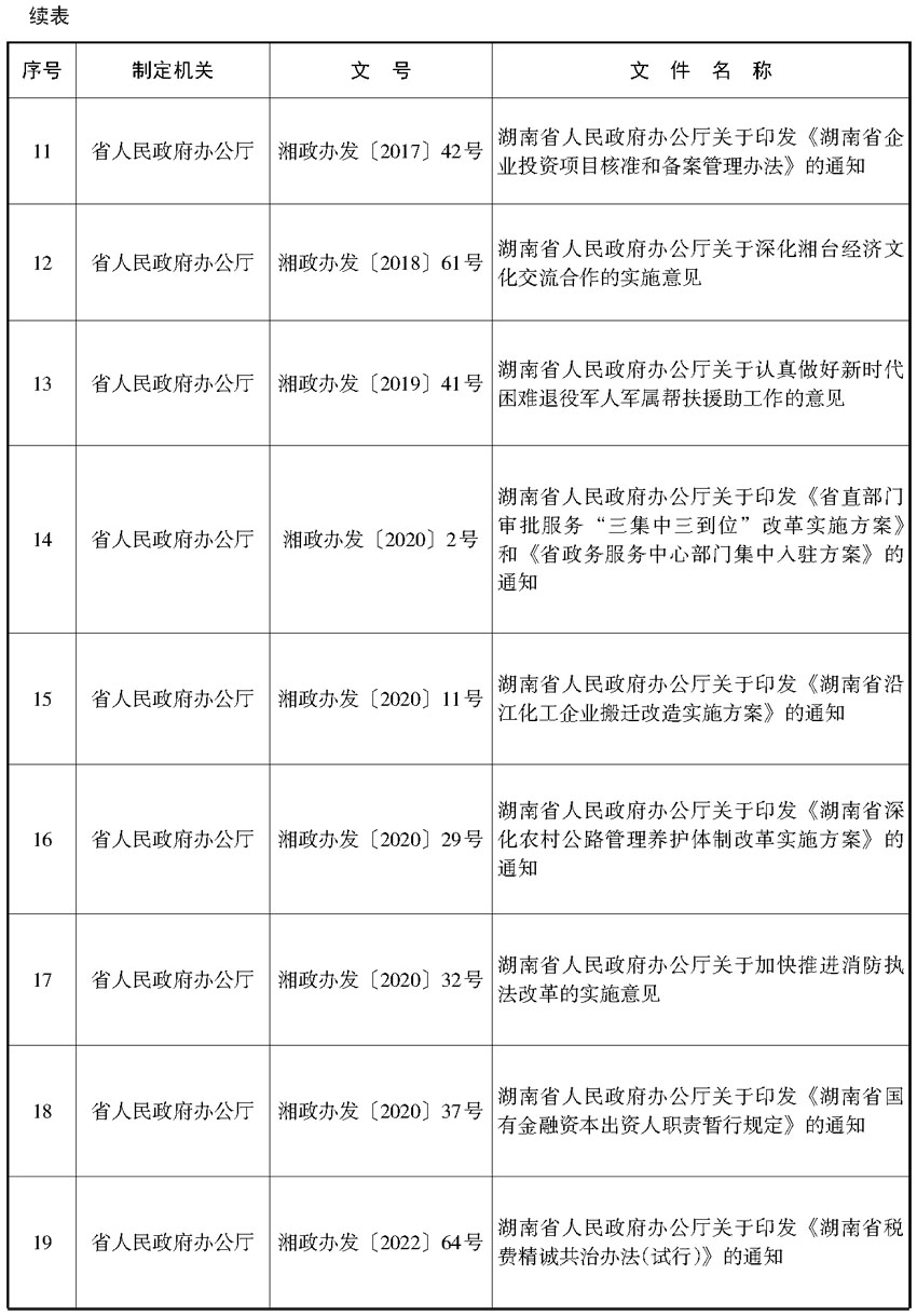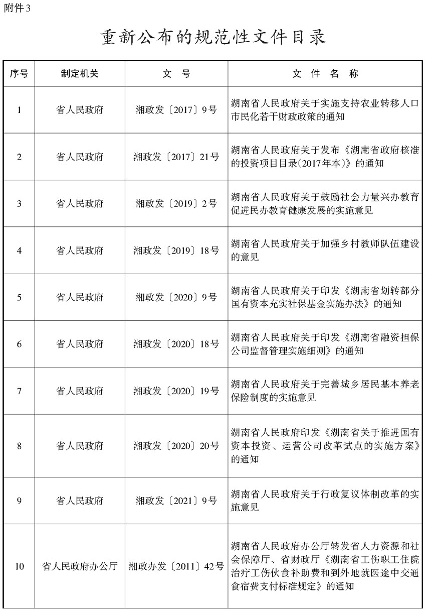 三、重新公布《湖南省人民政府關于實施支持農業轉移人口市民化若干財政政策的通知》(湘政發〔2017〕9號)等19件規范性文件。