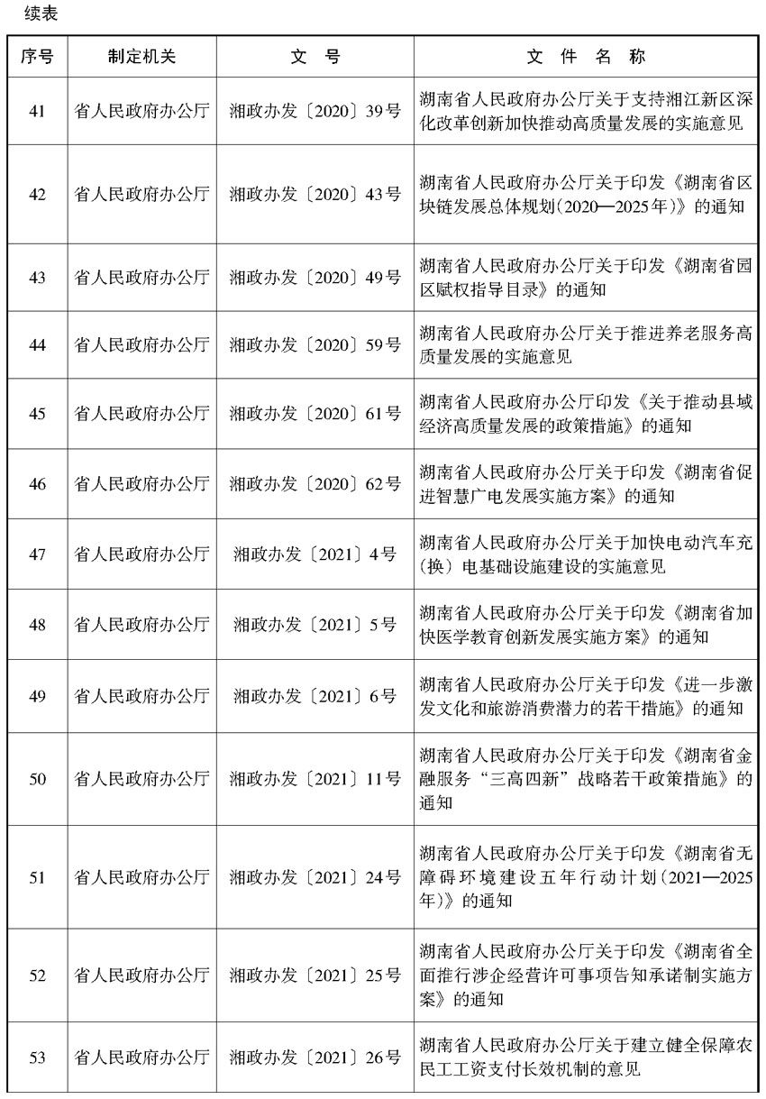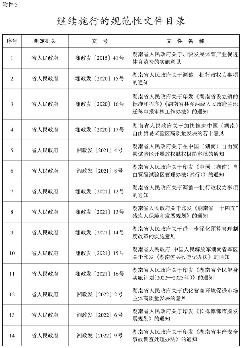 五、《湖南省人民政府關于加快發展體育產業促進體育消費的實施意見》(湘政發〔2015〕41號)等193件規范性文件繼續施行。