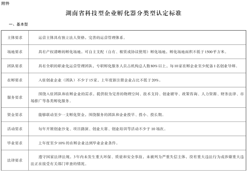 附件:湖南省科技型企業孵化器分類型認定標準