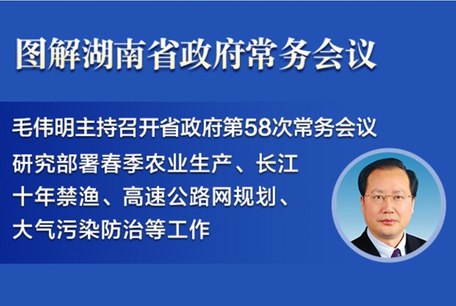 4月8日下午,省長毛偉明主持召開省政府第58次常務會議,傳達學習習近平總書記近期重要講話和指示批示精神,研究部署春季農業生產、推進長江十年禁漁、高速公路網規劃、大氣污染防治、試點引領新型城鎮化戰略、省政府立法計劃等工作。[詳細內容]