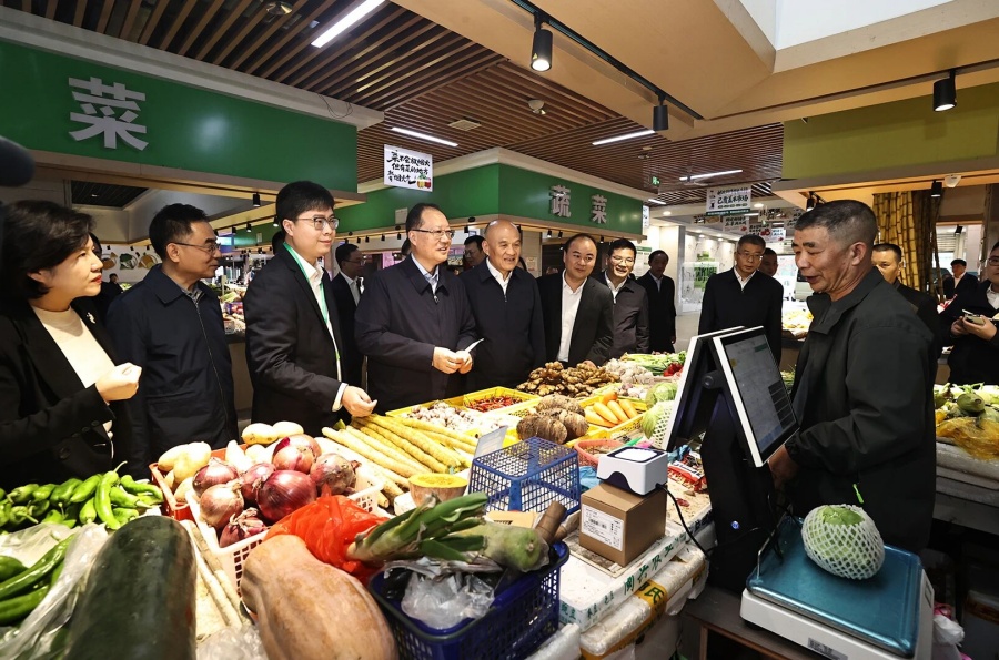 毛偉明在蒸水農貿市場檢查“陽光計量”農貿市場建設和食品安全。