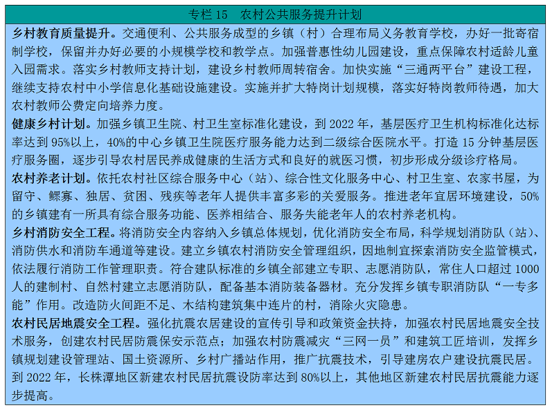 15.推動重點區穩步發展。洞庭湖、湘中南的縣市區,是鄉村振興的重點和主戰場。立足農業資源豐富、生產基礎良好,發展特色優勢產業,大幅提升農產品加工水平,加強基礎設施建設,推動農村產業、城鄉融合發展。到2035年,基本實現農業農村現代化。
