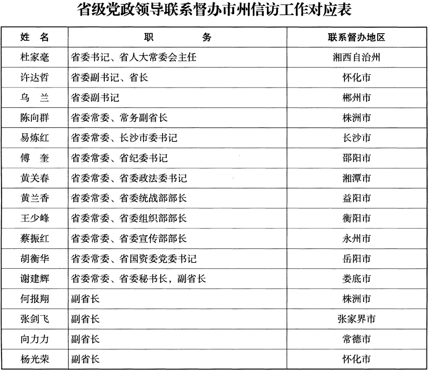 附件:省級黨政領導聯系督辦市州信訪工作對應表