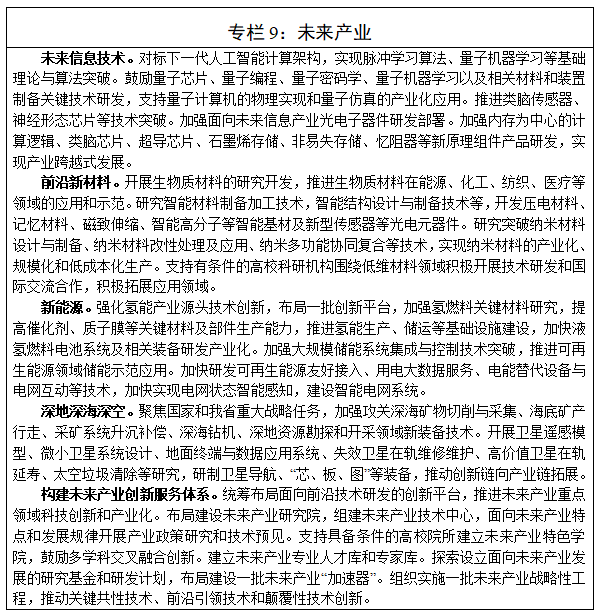 積極布局適應未來產業發展需求的創新平臺與科技基礎設施。加強未來產業人才引育,打造開放、包容的創新環境,鼓勵研究人員自由探索。加強引導支持,推進前沿技術轉化應用和迭代發展。