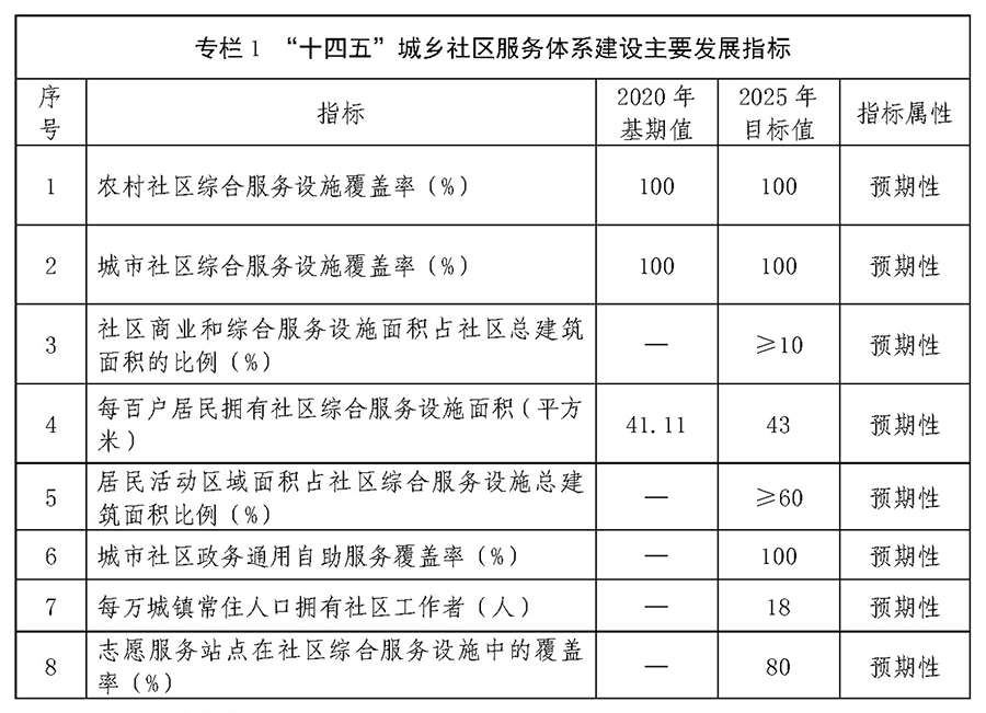 到2025年末,黨建引領城鄉社區服務體系建設更加完善,服務主體和服務業態更加豐富,服務手段更加智能,精準化、精細化水平持續提升,村(社區)為民、安民、便民功能充分發揮,人民群眾操心事、煩心事、揪心事更好解決,獲得感、幸福感、安全感不斷增強。