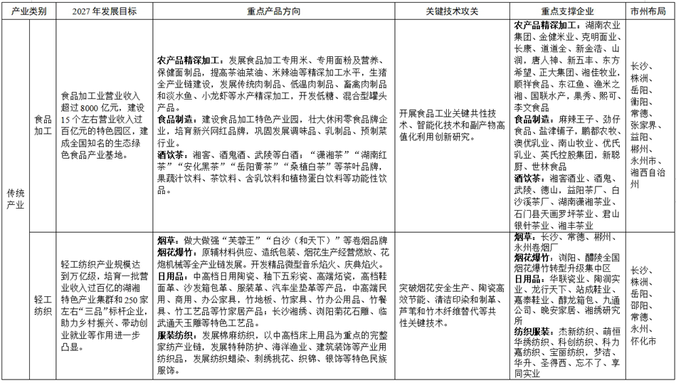 著力提高農副產品精深加工能力和質量安全水平,做強骨干龍頭企業,打造“湘字號”知名品牌。到2027年,全省食品加工業營業收入超過8000億元,建設15個左右營業收入過百億元的特色園區,建成全國知名的生態綠色食品產業基地。
