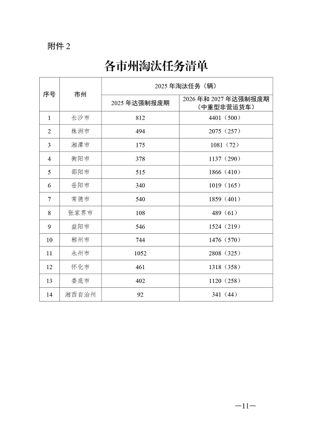 2025年底前,全面完成2025年達到強制報廢期的老舊非營運柴油貨車淘汰任務6659輛;以2026年和2027年達到強制報廢期車輛為重點,力爭提前淘汰老舊非營運柴油貨車22514輛。