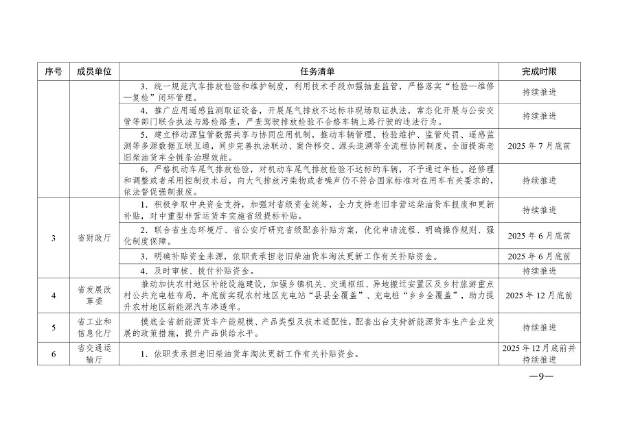 15.發揮省屬監管企業示范引領作用,2025年底前帶頭淘汰所屬全部老舊柴油貨車。(省國資委牽頭)