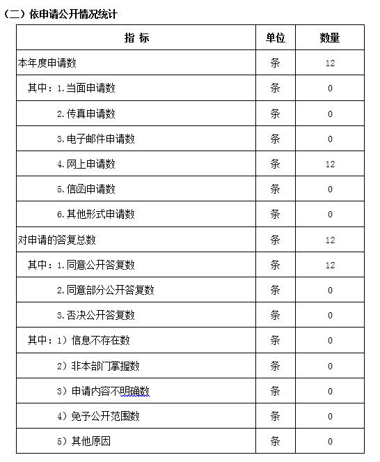 2017年,收到依申請公開網(wǎng)上申請數(shù)12件,已主動公開答復(fù)12件,同意公開答復(fù)12件。