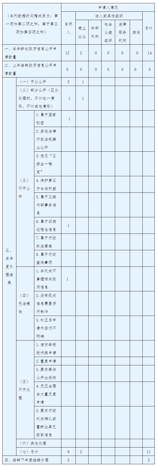 三、收到和處理政府信息公開申請情況