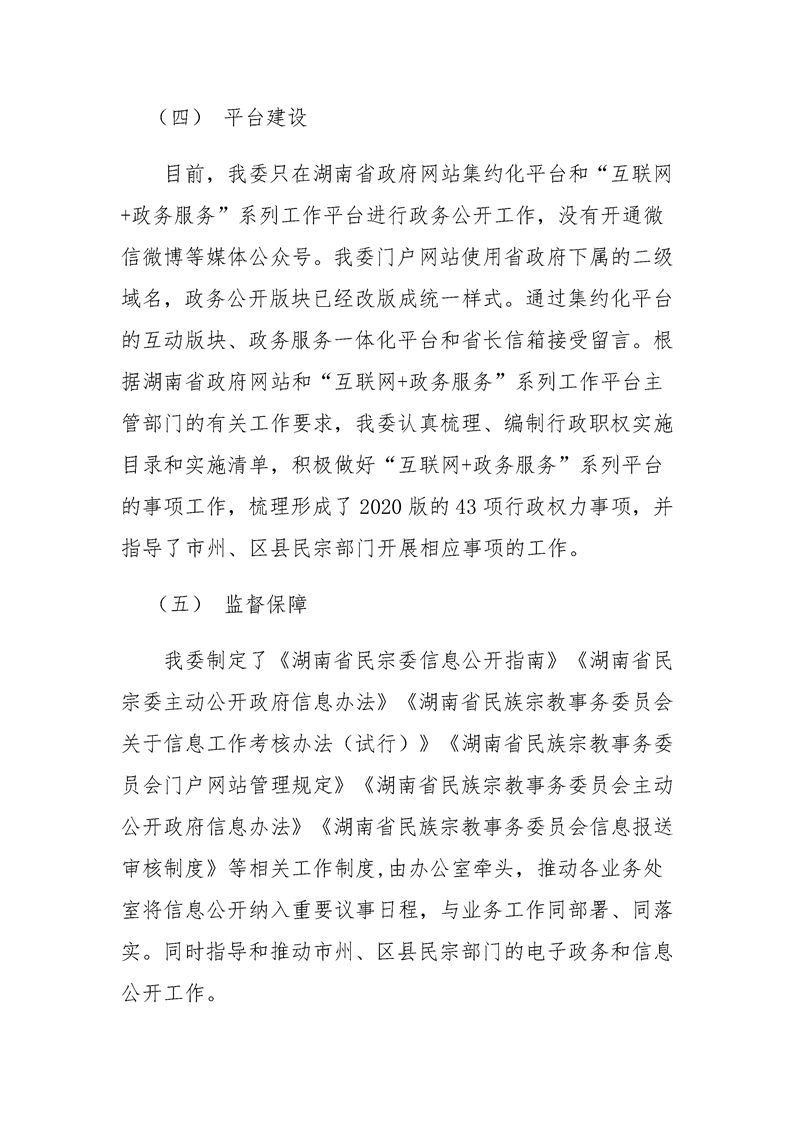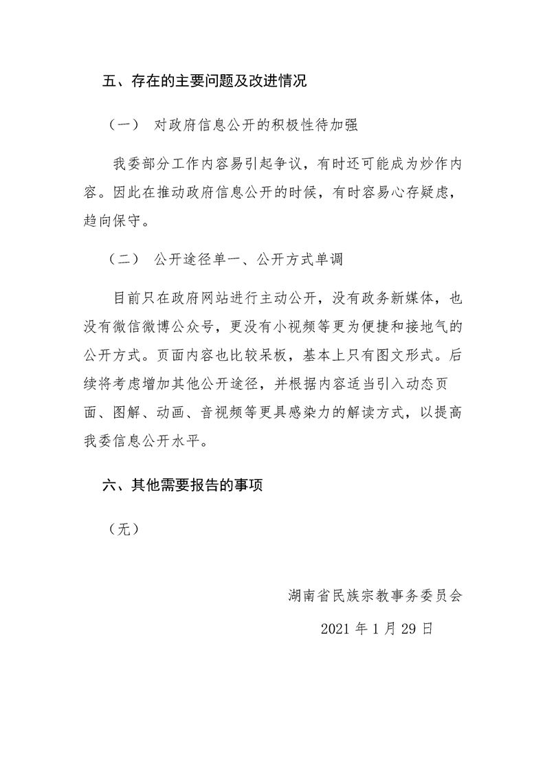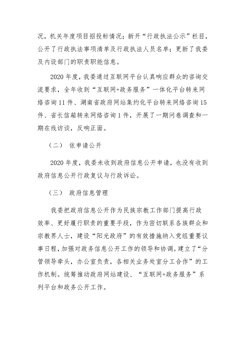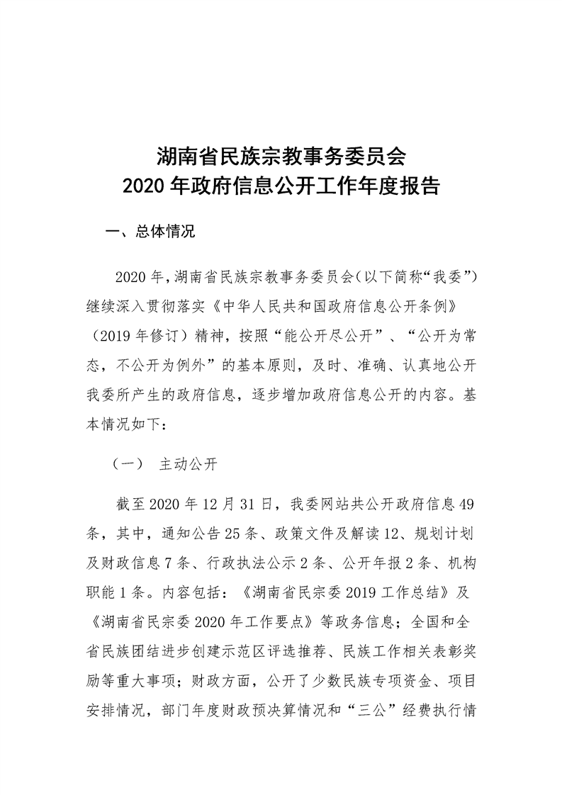 湖南省民族宗教事務委員會2020年政府信息公開工作年度報告