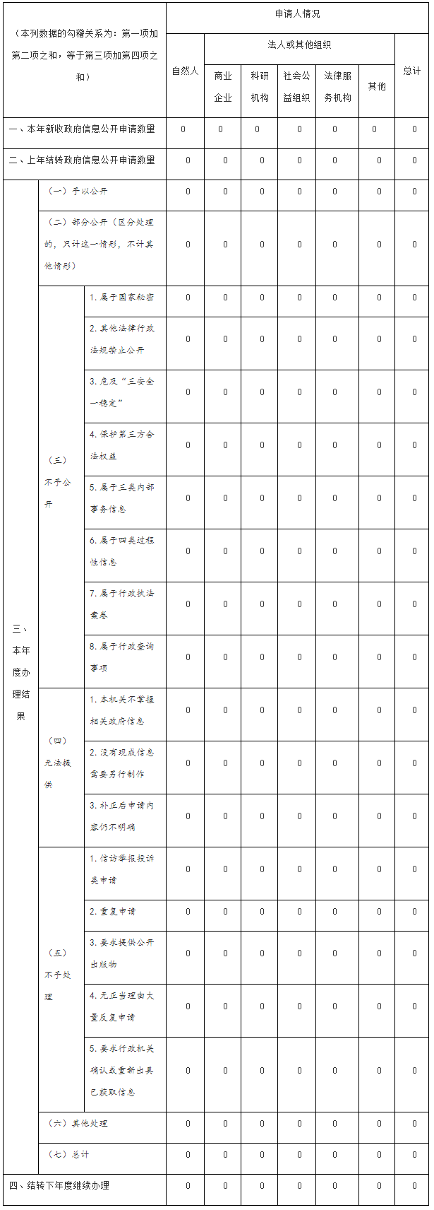 2020年度,未有公民、法人或其他組織提出政府信息公開申請。