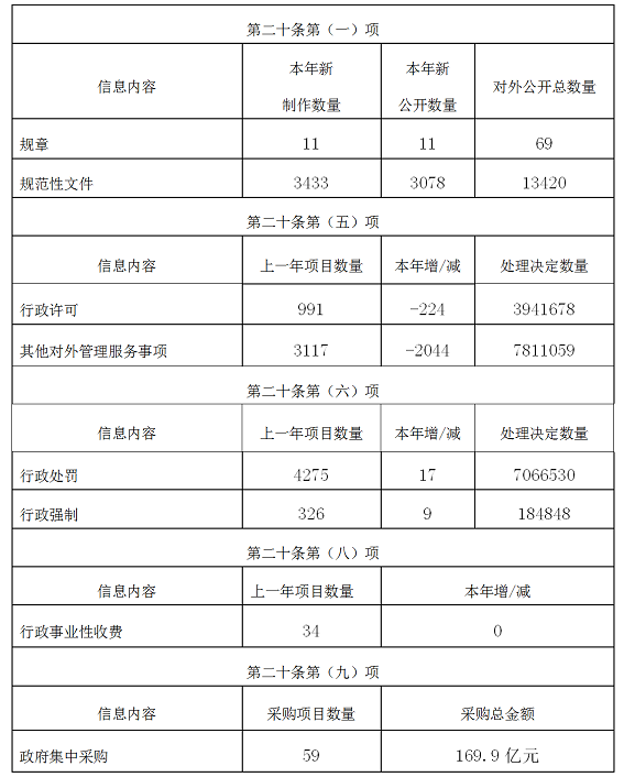 (一)主動公開法定政府信息。一年來,全省各級各部門嚴格對照條例第二十條規定,積極主動公開了15項法定政府信息,在此基礎上,根據條例第二十一條規定,設區的市級、縣級人民政府及其部門結合本地實際,還公開了涉及市政建設、公共服務、公益事業等7個方面的政府信息,鄉鎮人民政府還公開了貫徹落實農業農村政策、籌資酬勞、社會救助等8個方面的政府信息。省政府分類設計了規劃及相關政策、行政審批服務、重大建設項目、脫貧攻堅、教育、基本醫療衛生、社會保障、就業創業、環境保護、安全生產、食品藥品安全等19個重點領域,運用文件、數據、表格等方式,對“干貨”信息集成式、全生態公開,確保主動公開內容聚焦條例規定;公開了33次省政府常務會議、9件省政府規章、72件規范性文件,全年“省政府會議”欄目點擊量達11134.9萬次,文件庫點擊量達1154.9萬次。湘潭市全年公開行政許可信息55560條,行政處罰信息2047條,抽查檢查信息5075條。長沙市每月公開上月全市財政收支情況,對收支主要數據及增減變化情況進行分析說明,全年公開財政信息3163條。