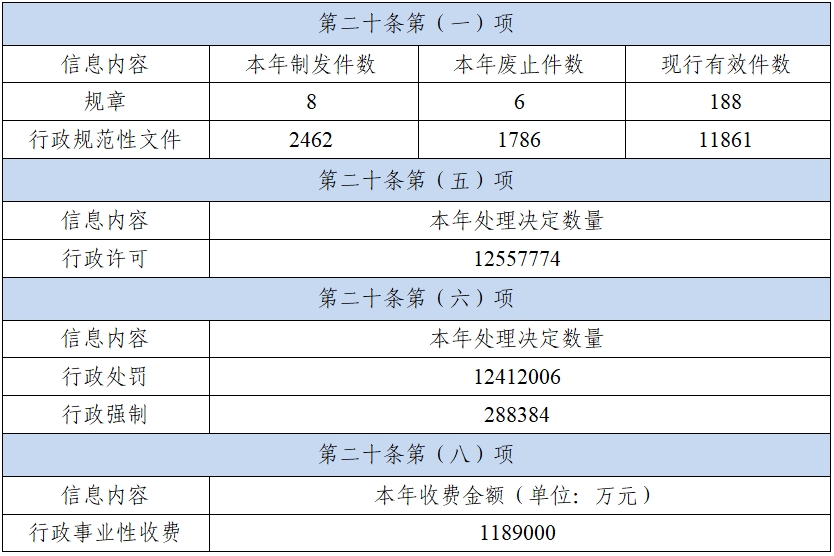 (三)政府信息管理情況。持續做好政府規章公開管理工作,建立健全政府規章動態更新機制,不斷完善省政府門戶網站“湖南省政府規章庫”內容。2023年制定發布省政府規章7部,廢止省政府規章1部,現行有效省政府規章121部;制定發布市政府規章1部,廢止市政府規章5部,現行有效市政府規章67部。各市州人民政府、省直各單位通過政府門戶網站的政府信息公開專欄,集中公開規范性文件并動態更新;縣級以上人民政府依托政府門戶網站開設專欄,集中發布政府常務會議、政府全會等決策信息。2023年,全省共制發規范性文件2462件,廢止規范性文件1786件,現行有效規范性文件11861件;在省政府門戶網站政府文件庫發布省政府文件8件、省政府辦公廳文件42件。