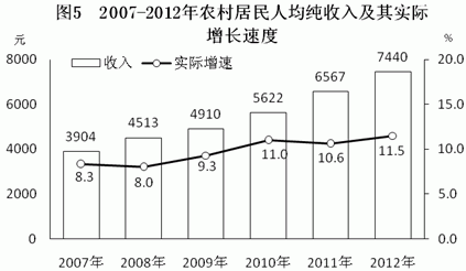 全省城鎮居民人均可支配收入21319元,比上年增長13.1%;扣除價格因素,實際增長10.7%。農村居民人均純收入7440元,增長13.3%;扣除價格因素,實際增長11.5%。