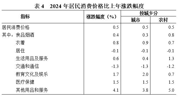 全省居民消費價格比上年上漲0.5%。其中,城市上漲0.5%,農村上漲0.5%。工業生產者出廠價格下降0.7%,工業生產者購進價格下降2.4%。農產品生產者價格上漲3.3%。