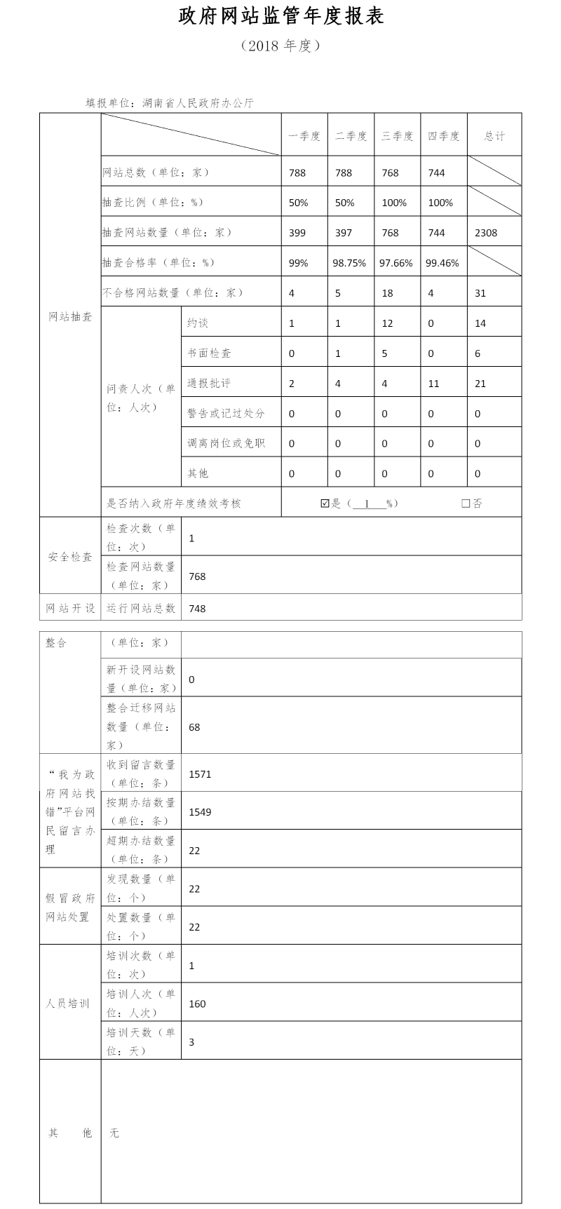 2018年湖南政府網(wǎng)站監(jiān)管年度報表