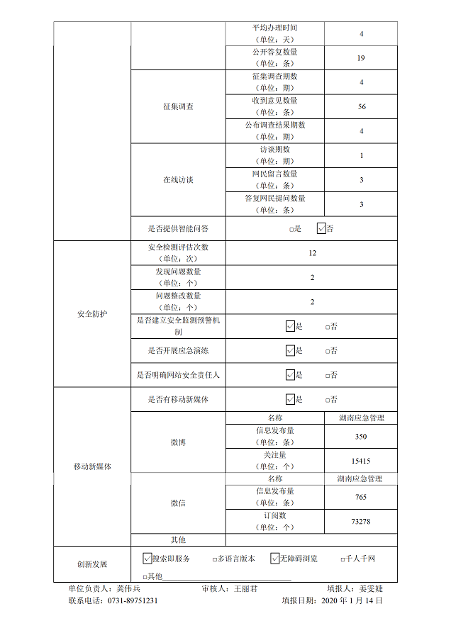 2019年湖南省應急管理廳網站工作年度報表