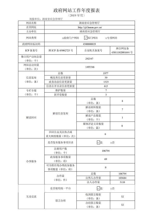 2019湖南省政府網站工作年度報表