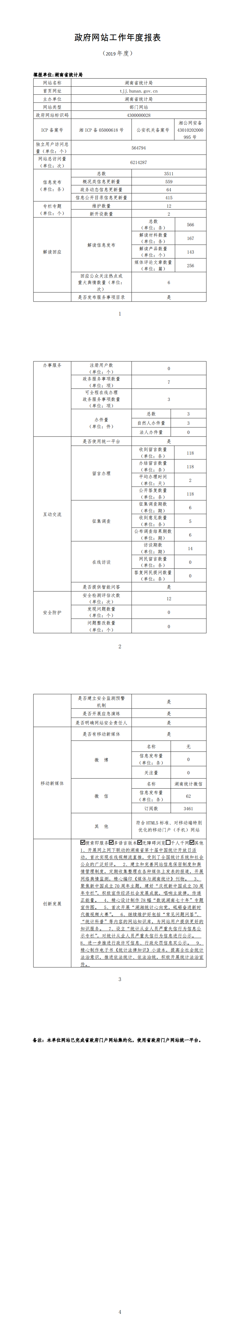 2019湖南省政府網(wǎng)站工作年度報表