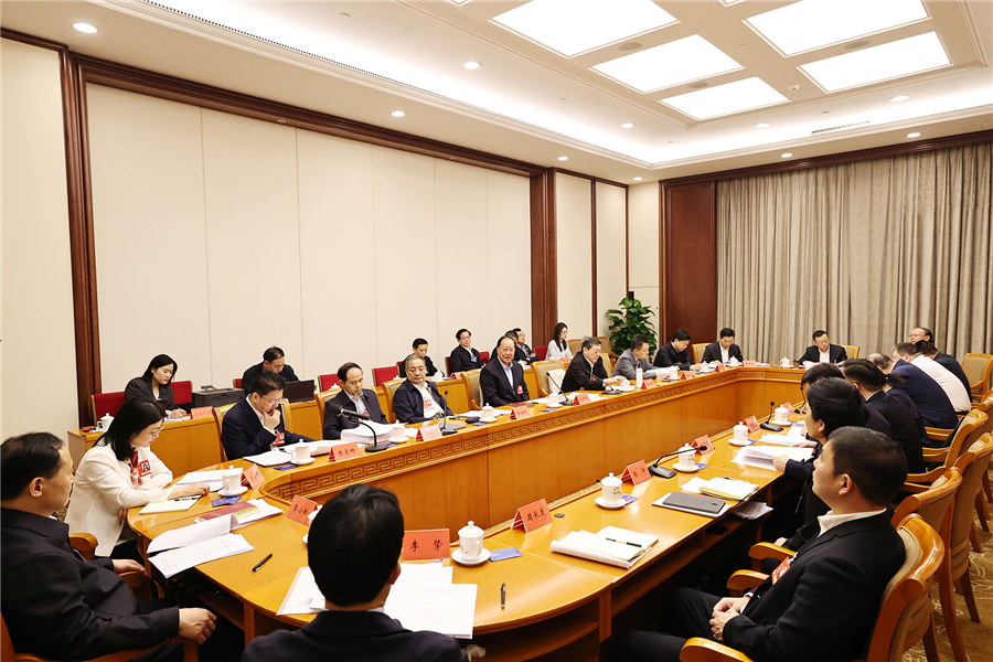 3月9日,湖南代表團(tuán)在駐地舉行分組會(huì)議。