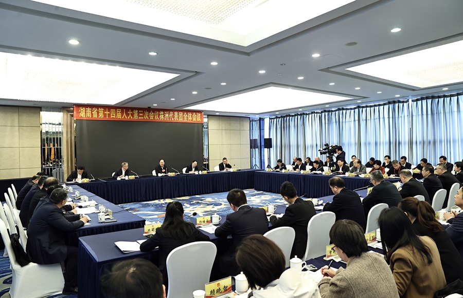 審議中,毛偉明和代表們一致認為,省人大常委會工作報告和省“兩院”工作報告堅持理論和實踐相結合、敘事和明理相結合、經驗和制度相結合,充分體現了堅持黨的領導、人民當家作主、依法治國有機統一,是高舉偉大旗幟、彰顯制度優勢、弘揚法治精神、飽含為民情懷的好報告,表示完全贊成。過去一年,省十四屆人大及其常委會從70年波瀾壯闊的人大歷史中汲取智慧力量,認真履行憲法法律賦予的職責,有效發展全過程人民民主,政治建設有力有效、服務發展有為有位、履職創新有章有法、代表工作有聲有色,有力支持了全省新質生產力培育、財政運行監管、美麗湖南建設、民生福祉改善和法治政府建設;省高院、省檢察院聚焦“國之大者”“省之大計”“民之關切”,堅持司法為民的政治擔當、法治擔當,有力護航高質量發展、保障群眾權益、推動環境治理、促進依法行政,讓公平正義更加可觸、可感、可及。