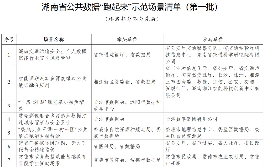 附件:湖南省公共數據“跑起來”示范場景清單(第一批)