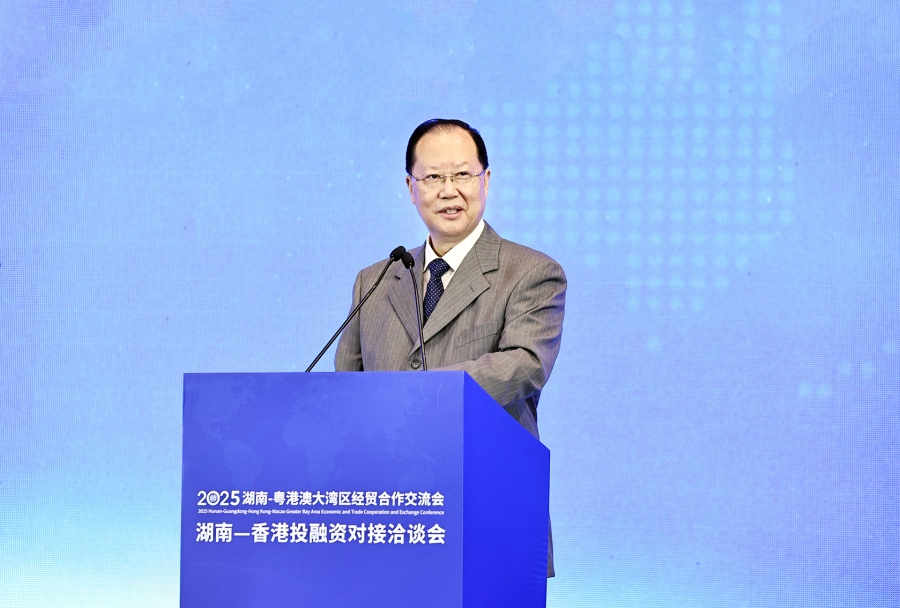 “縱山河遠闊,難隔一脈同源;雖千里迢迢,不改攜手初心。”毛偉明在致辭中說,長期以來,作為湖南境外第一大貿(mào)易伙伴、境外融資第一選擇地、入境游第一大客源地,香港在湘投資達241億美元、占湖南利用外資的67%,兩地進出口額連續(xù)6年超500億元,供港農(nóng)產(chǎn)品70%左右來自湖南,僅去年就有43萬香港游客來湘打卡。湖南與香港有著廣闊的合作空間,希望雙方以更緊密的協(xié)作推動科產(chǎn)融合,以更高效的聯(lián)通促進資本融合,以更開闊的視野加強貿(mào)易融合,以更便利的舉措深化文旅融合,以更多的新途徑新方式,繪就合作共贏新圖景。