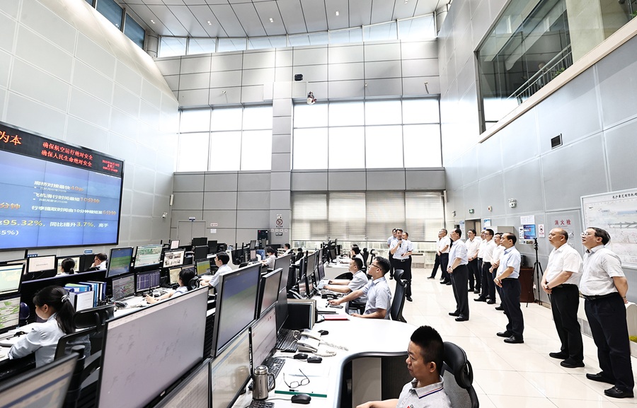 長沙黃花機場運行控制指揮中心是機場的“智慧大腦”,去年成功保障3121.81萬人次旅客平安出行,旅客吞吐量創歷史新高。毛偉明一行詳細了解機場樞紐建設和運行保障情況,指出要進一步加快精細化、專業化、智慧化改造,助力人暢行、貨暢通。