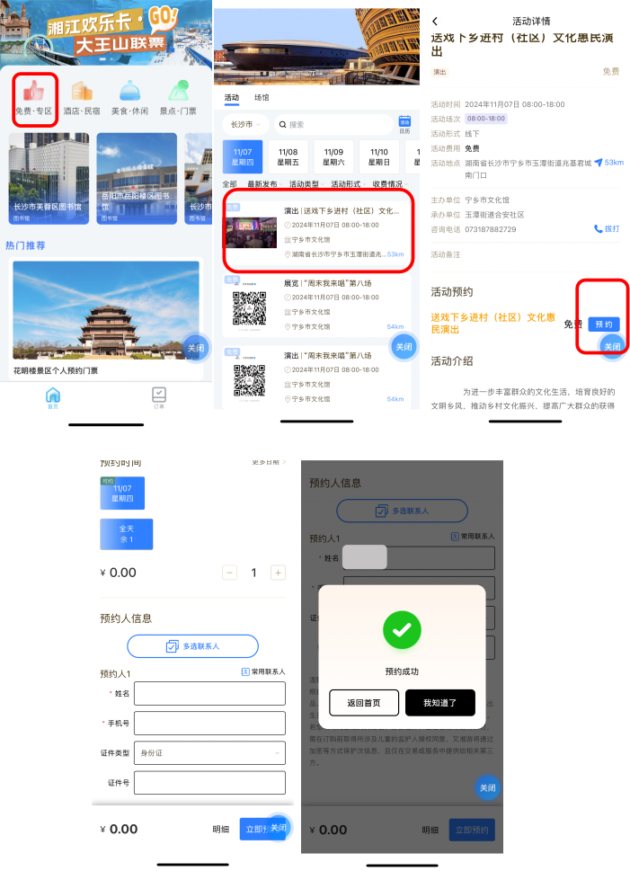 選擇 “免費(fèi)?專區(qū)” ,進(jìn)入后可查詢并預(yù)約各類免費(fèi)的活動以及場館。