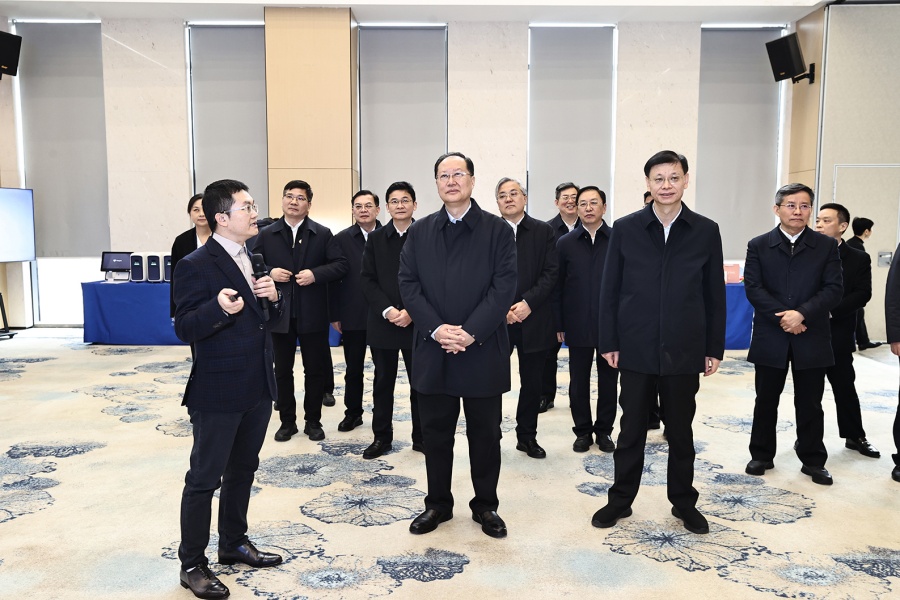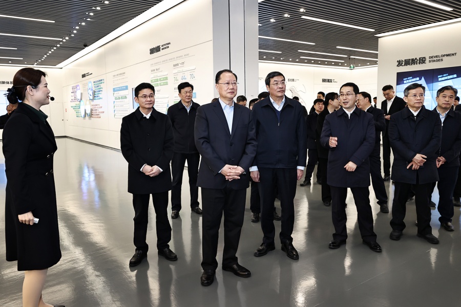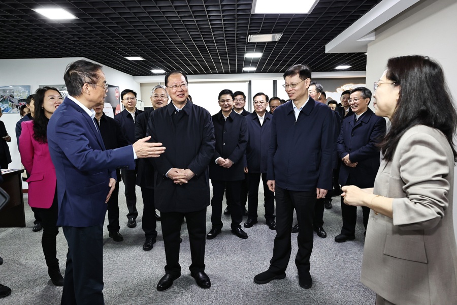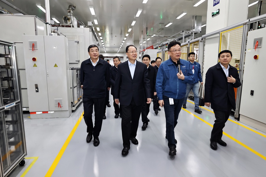 2月20日下午,毛偉明在蘇州華興源創考察。