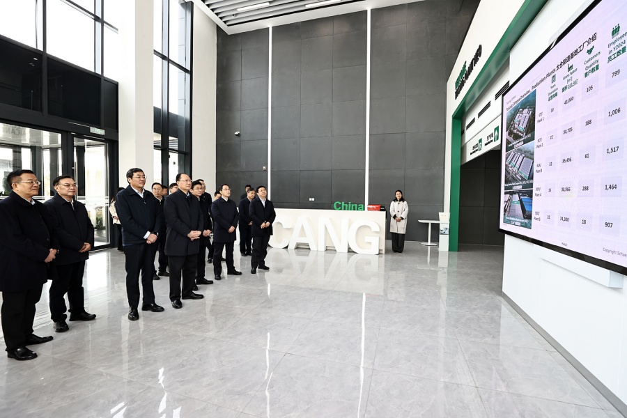 2月20日上午,毛偉明在舍弗勒集團太倉工廠考察。