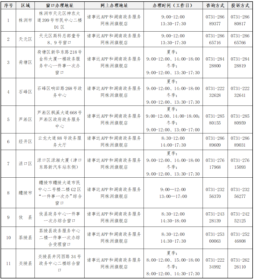 十一、受理窗口