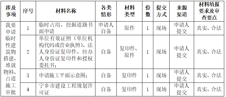 我要辦理申請臨時性建筑物搭建、堆放物料、占道施工審批
