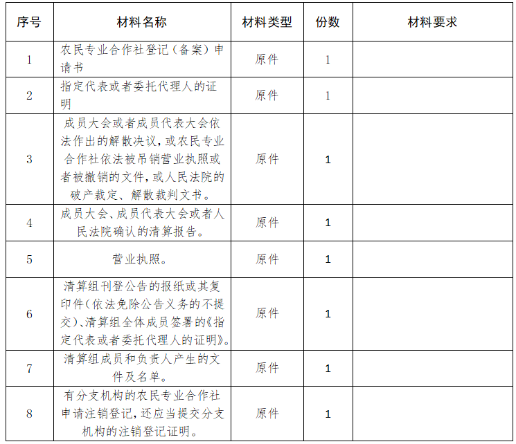 “我要辦理農民專業合作社注銷登記”辦事指南