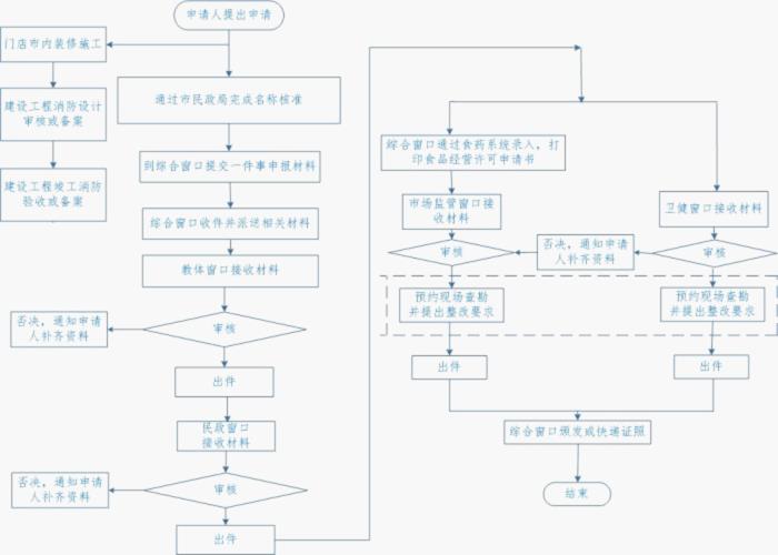 全流程承諾時限:50個工作日(不含材料補正、申請人裝修、現場踏勘不通過提出整改等時間)。