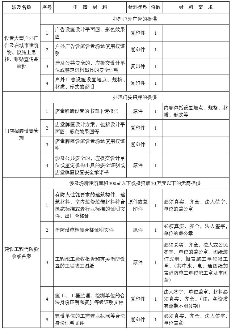 6. 門店招牌設置管理:在綜合窗口申請時只需提交電子版材料,紙質版在管理人員現場監 管時提供。
