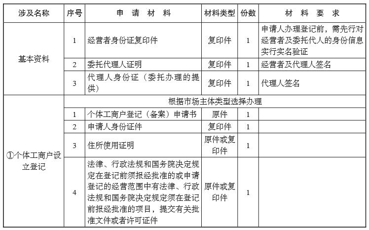 (一) 市場主體設立登記;