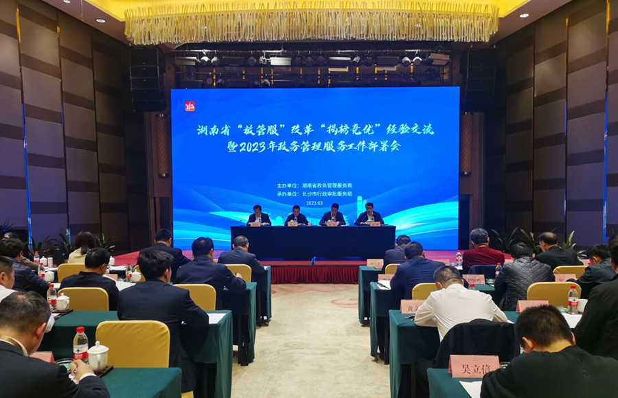 3月6日至7日,湖南省“放管服”改革“揭榜競優”經驗交流暨2023年政務管理服務工作部署會議在長沙召開,全省各市州行政審批服務局和政務服務中心主要負責人及部分區縣(市)、園區政務管理服務機構負責人參加。