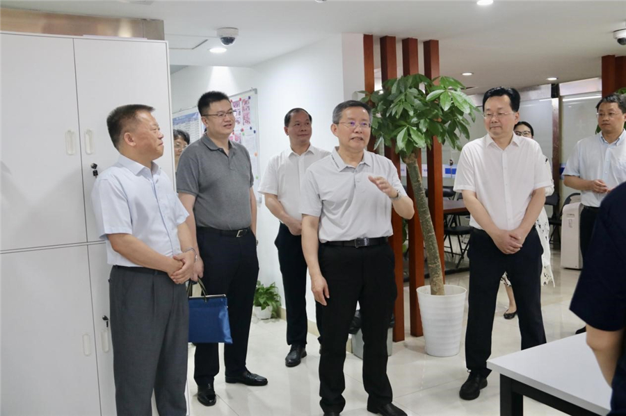 瞿海首先來到“湘易辦”項目組看望工作人員,詳細了解團隊人員配備、項目建設等具體情況,并提前向大家致以端午節問候。