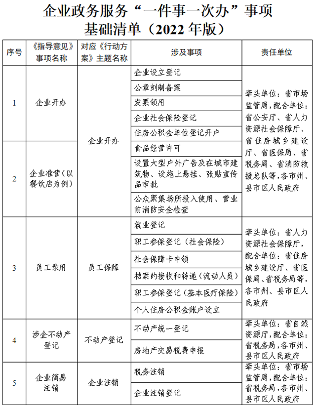 附件:1.企業政務服務“一件事一次辦”事項基礎清單(2022年版)