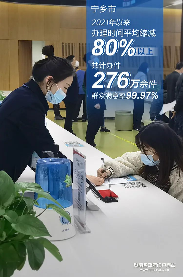一系列改革舉措,匯聚成“極簡”的辦事服務體驗,并最終體現為企業群眾的獲得感、幸福感、滿意度。2021年以來,寧鄉市申報材料平均減少60%以上、辦理環節平均壓縮70%以上、辦理時間平均縮減80%以上,全市政務服務系統共計辦件276萬余件,群眾滿意率達99.97%。